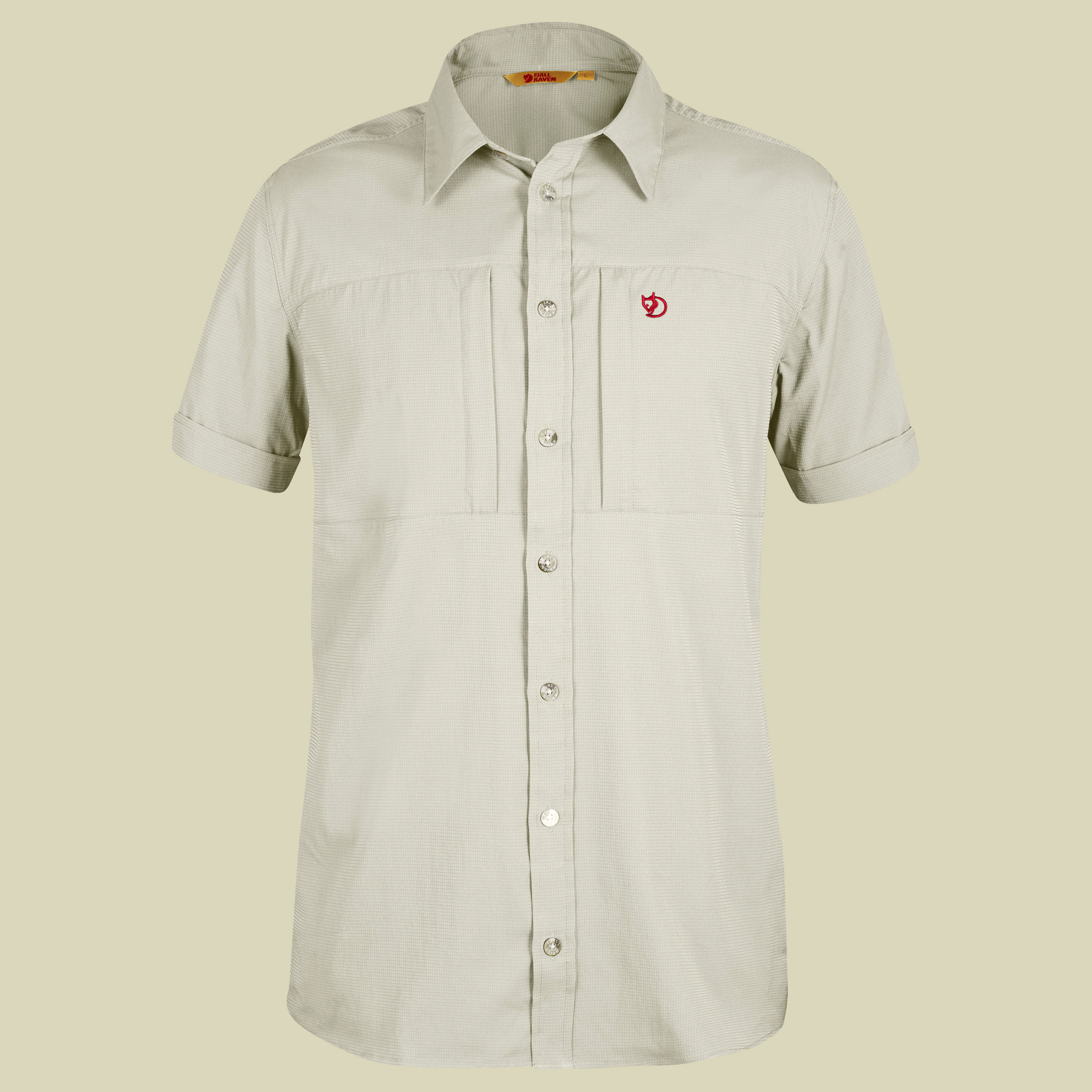 Das Fjällräven Kurzarm-Hemd Hjort Short Sleeve Shirt Men ist aus geschmeidigem, schnelltrocknendem Funktionsmaterial gefertigt. Das Gewebe des Hemdes ist elastisch, atmungsaktiv und pflegeleicht. Das Polyestergewebe mit sehr guten feuchtigkeitstransportierenden Eigenschaften ist eine Mischung aus recyceltem und gewöhnlichem Polyester. Das Kurzarm-Hemd Hjort Short Sleeve Shirt von Fjällräven schützt vor UV-Strahlung (UPF 50+). Zur Ausstattung des Fjällräven Hemdes gehören zwei vertikale Brusttaschen mit Reißverschluss und eine verdeckte Mesh-Tasche für Wertsachen in der Seitennaht. Das Hjort Short Sleeve Shirt Men von Fjällräven ist ein sportliches Hemd für Wander- und Trekkingtouren.