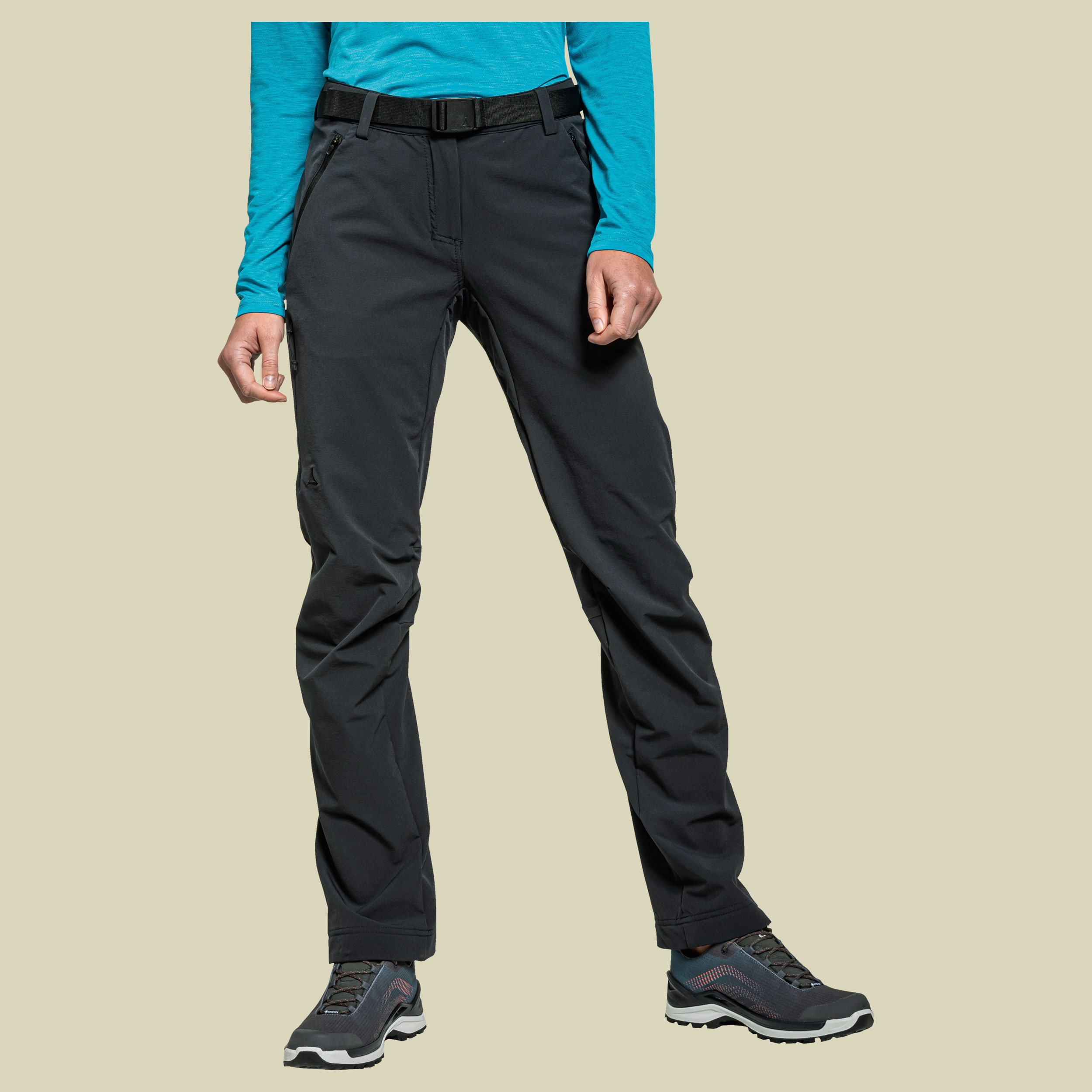 Mit der Softshellhose Pants Taibun L Women von Schöffel bist du bestens ausgerüstet für Outdooraktivitäten am Berg. Die Wanderhose mit separatem Gürtel aus 2-Wege-Stretch bietet gute Bewegungsfreiheit auch abseits der vollen Wanderwege. Zudem ist die Hose von Schöffel wasserabweisend, trocknet schnell und ist strapazierfähig. Für zusätzlichen Komfort verfügt die Pants Taibun L Women über vorgeformte Knie sowie eine Saumverstellung. Für sicheren Halt sorgt neben dem separaten Gürtel auch der Druckknopfverschluss mit zusätzlichem Hosenhaken.